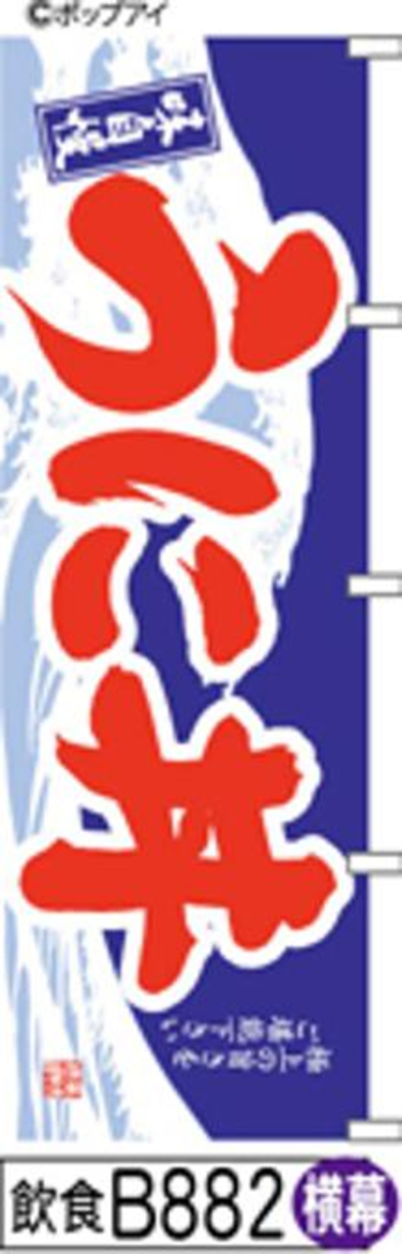 横幕【うに丼】のぼり旗|送料無料 目立つ手書き筆文字[b882]青に波柄赤