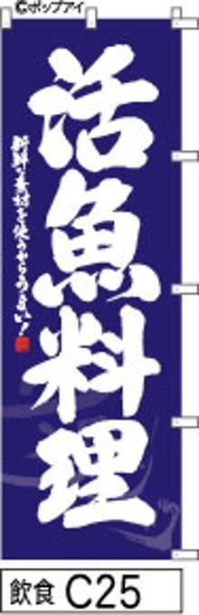 【活魚料理】のぼり旗|送料無料 目立つ手書き筆文字[c025]紺に白抜き