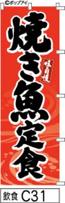 【焼き魚定食】のぼり旗|送料無料 目立つ手書き筆文字[c031]赤に黒