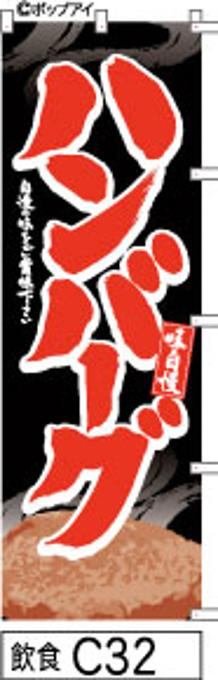 【ハンバーグ】のぼり旗|送料無料 目立つ手書き筆文字[c032]黒に赤