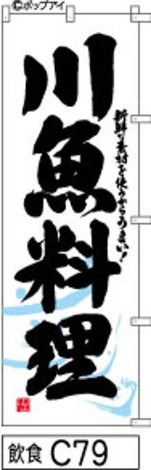 【川魚料理】のぼり旗|送料無料 目立つ手書き筆文字[c079]白地に黒