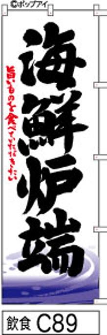 【海鮮炉端】のぼり旗|送料無料 目立つ手書き筆文字[c089]白地に青波黒