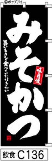 【みそかつ】のぼり旗|送料無料 目立つ手書き筆文字[c136]黒に白抜き
