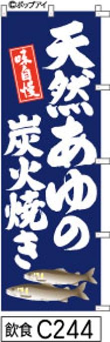 【天然あゆの炭火焼】のぼり旗|送料無料 目立つ手書き筆文字[c244]紺白抜き