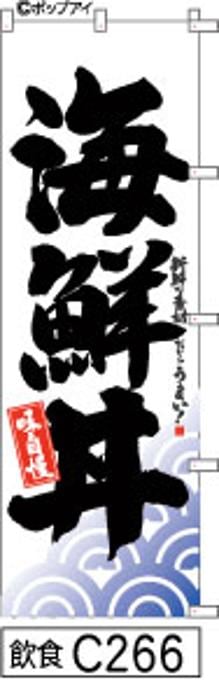 【海鮮丼】のぼり旗|送料無料 目立つ手書き筆文字[c266]白地に波柄黒