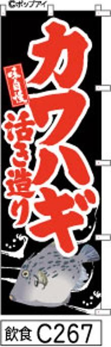 【カワハギ活き造り】のぼり旗|送料無料 目立つ手書き筆文字[c267]黒赤