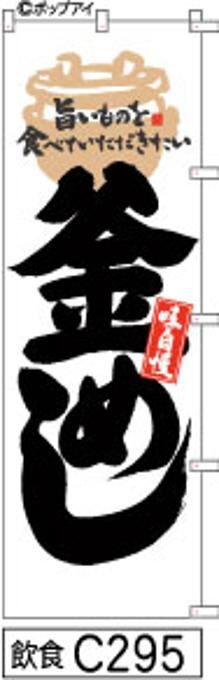 「のぼり 釜飯 白地に黒手書き筆文字 飲食 C295 商標登録番号6807113 」