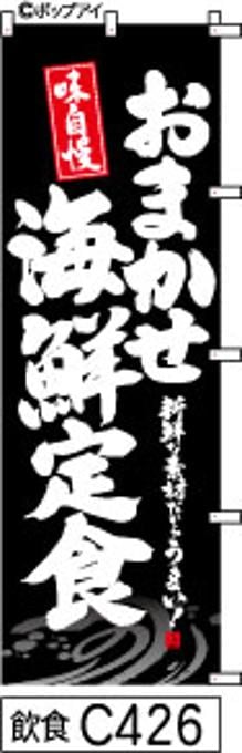 【おまかせ海鮮定食】のぼり旗|送料無料 目立つ手書き筆文字[c426]黒波白抜き