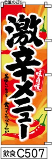 スパイシーな料理や激辛メニューを提供するお店にぴったりのアイテムです。こののぼりで店頭を飾れば、通行人の目を引き、あなたのメニューがひと際目立つ演出に。