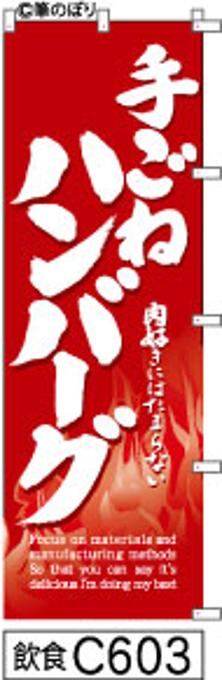 「のぼり【手ごねハンバーグ】エンジに白抜き手書き筆文字[飲食C603](商標登録番号6807113)」