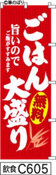 【ごはん大盛り無料】のぼり旗|送料無料 目立つ手書き筆文字[c605]赤白抜き