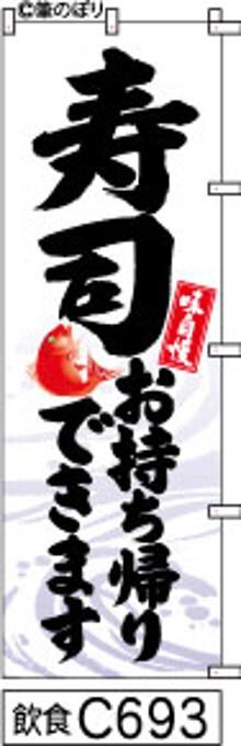【寿司お持帰り】のぼり旗|送料無料 目立つ手書き筆文字[c693]白地に波柄黒
