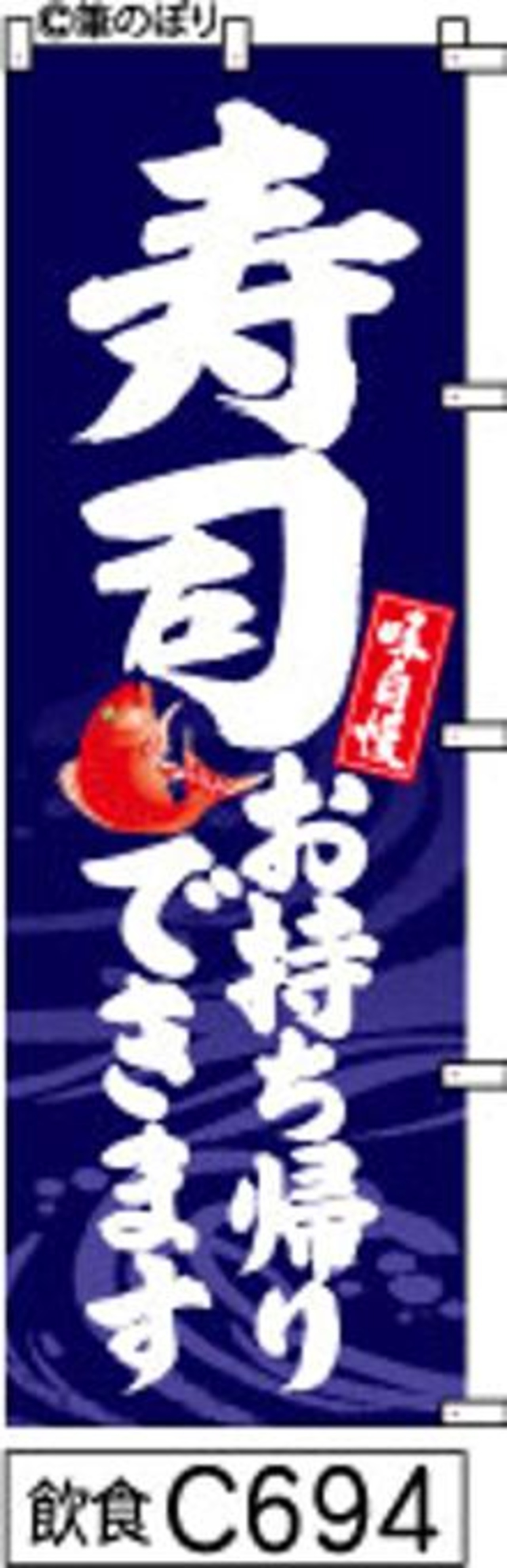 【寿司お持帰り】のぼり旗|送料無料 目立つ手書き筆文字[c694]紺に波模様白抜き
