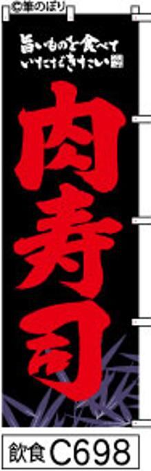 【肉寿司】のぼり旗|送料無料 目立つ手書き筆文字[c698]黒に笹柄赤
