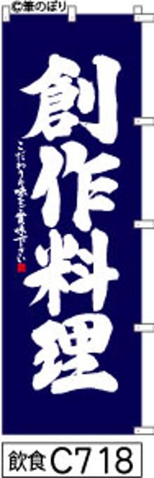 「のぼり【創作料理】紺の白抜き手書き筆文字[飲食C718](商標登録番号6807113)」