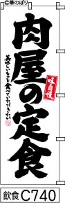 【肉屋の定食】のぼり旗|送料無料 目立つ手書き筆文字[c740]白地に黒