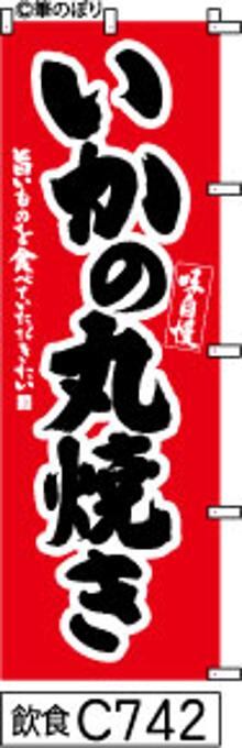 【烏賊の丸焼き】のぼり旗|送料無料 目立つ手書き筆文字[c742]赤に黒
