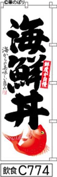 「のぼり【海鮮丼】白地に黒の手書き筆文字 飲食 C774 商標登録番号6807113」