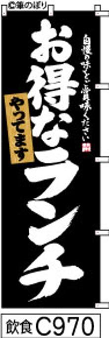 【お得なランチ】のぼり旗|送料無料 目立つ手書き筆文字[c970]黒白抜き