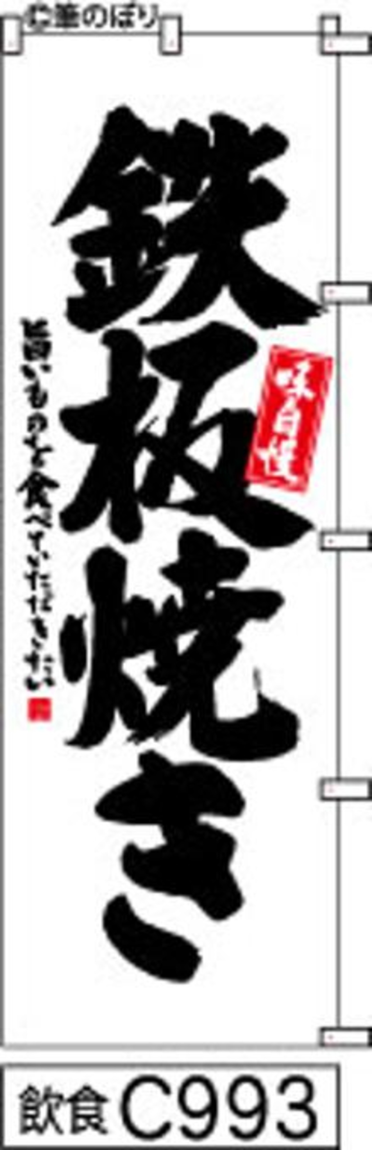 【鉄板焼き】のぼり旗|送料無料 目立つ手書き筆文字[c993]白地に黒