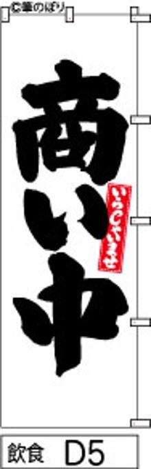 「のぼり【商い中】白地に黒の手書き筆文字[飲食D005](商標登録番号6807113)」