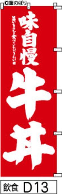 「のぼり【牛丼】赤の白抜き手書き筆文字[飲食D013](商標登録番号6807113)」