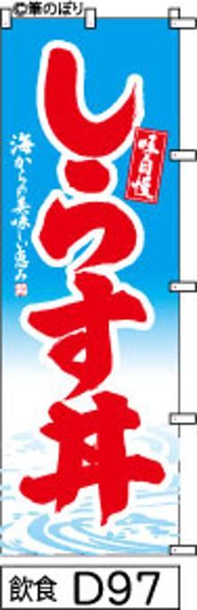 【しらす丼】のぼり旗|送料無料 目立つ手書き筆文字[d097]水色波柄に赤