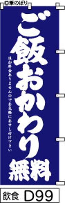 【ご飯おかわり無料】のぼり旗|送料無料 目立つ手書き筆文字[d099]紺白抜き