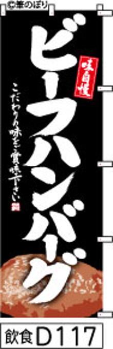 のぼり【ビーフハンバーグ】黒地に白抜き手書き筆文字[飲食D117](商標登録番号6807113)