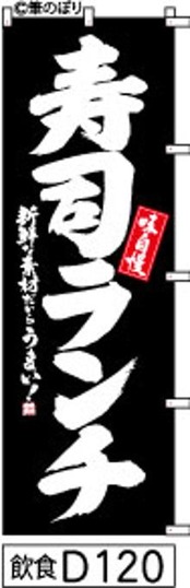 「のぼり【寿司ランチ】黒の白抜き手書き筆文字[飲食D120](商標登録番号6807113)」