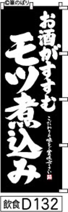 「モツ煮込み のぼり 【モツ煮込み】黒の白抜き手書き筆文字[飲食D132] 商標登録番号6807113 」