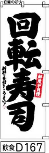 「のぼり【回転寿司】白地に黒の手書き筆文字[飲食D167]」