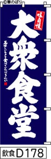 「のぼり 大衆食堂 紺地 白抜き手書き筆文字 飲食 D178 商標登録番号6807113 」