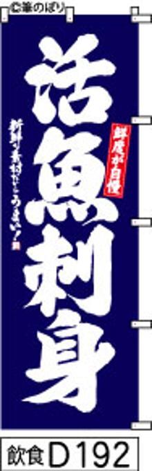 「のぼり【活魚刺身】 紺の白抜き手書き筆文字[飲食D192] (商標登録番号6807113)」