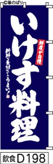 【いけす料理】のぼり旗|送料無料 目立つ手書き筆文字[d198]紺白抜き