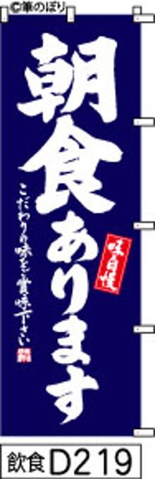 「のぼり【朝食あります】紺の白抜き手書き筆文字[飲食D219](商標登録番号6807113)」