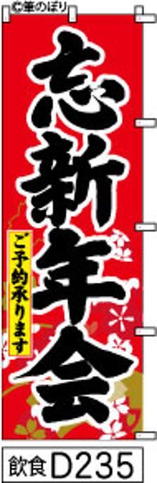 「のぼり【忘年会新年会】赤に黒の手書き筆文字[飲食D235](商標登録番号6807113)」