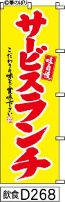 「サービスランチ のぼり 【飲食D268】 黄色に赤の手書き筆文字、受注生産・商標登録番号6807113」
