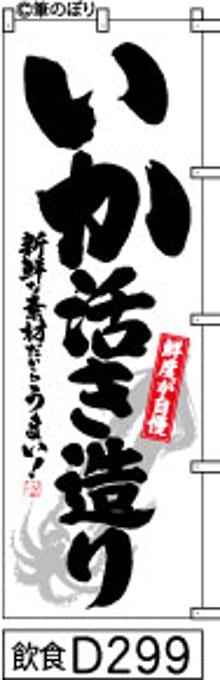 「のぼり【いか活き造り】白地に黒の手書き筆文字 飲食 D299 商標登録番号6807113 」