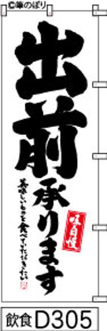 「のぼり【出前】白地に黒の手書き筆文字[飲食D305](商標登録番号6807113)」
