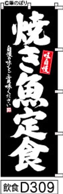 「のぼり【焼き魚定食】黒の白抜き手書き筆文字[飲食D309](商標登録番号6807113)」