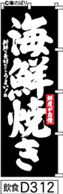 【海鮮焼き】のぼり旗|送料無料 目立つ手書き筆文字[d312]黒白抜き