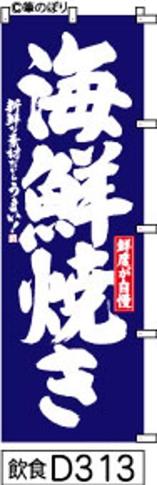 「のぼり【海鮮焼き】青の白抜き手書き筆文字[飲食D313](商標登録番号6807113)」