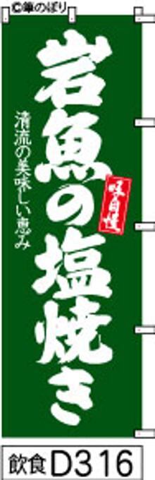 【岩魚の塩焼き】のぼり旗|送料無料 目立つ手書き筆文字[d316]濃緑白抜き