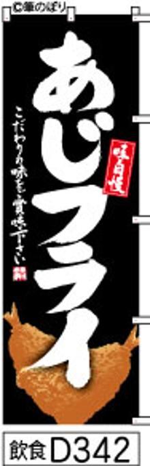「のぼり【あじフライ】黒の白抜き手書き筆文字[飲食D342](商標登録番号6807113)」