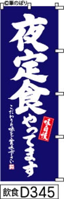 【夜定食】のぼり旗|送料無料 目立つ手書き筆文字[d345]紺白抜き