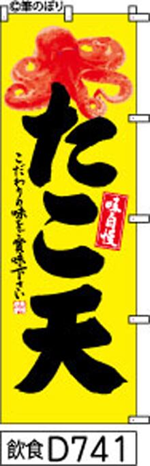 【たこ天】のぼり旗|送料無料 目立つ手書き筆文字[d741]黄色に黒