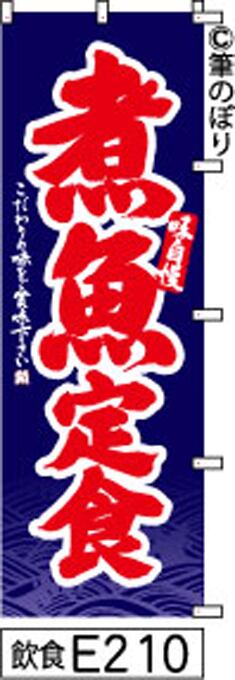 【煮魚定食】のぼり旗|送料無料 目立つ手書き筆文字[e210]紺に赤