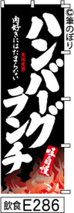 【ハンバーグランチ】のぼり旗|送料無料 目立つ手書き筆文字[e286]黒白抜き