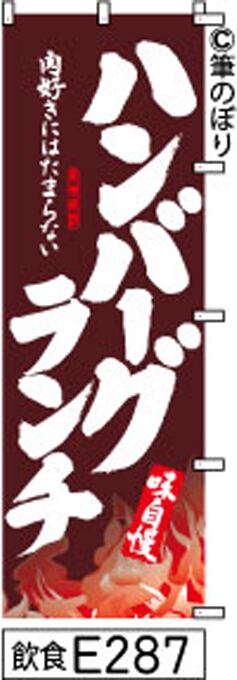 【ハンバーグランチ】のぼり旗|送料無料 目立つ手書き筆文字[e287]茶色白抜き